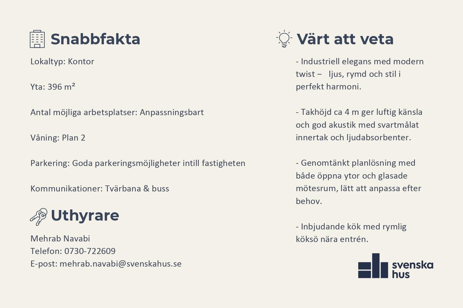 Kontakta uthyraren för fullständiga hyresuppgifter eller för att boka en visning – här finns möjligheten att skapa en kontorsmiljö utöver det vanliga!