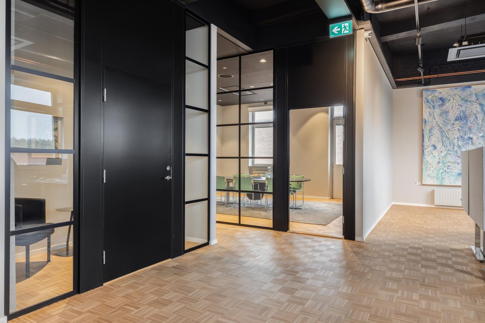 Lokalen är smart planerad för att rymma både avskilda mötesrum och öppna arbetsytor, med glaspartier som skiljer av samtidigt som de behåller transparens och ljusflöde. Flexibla mötesplatser ger utrymme för spontana diskussioner eller formella presentationer. Här finns goda möjligheter att anpassa inredning och ytor efter olika verksamheters behov och att växa över tid.